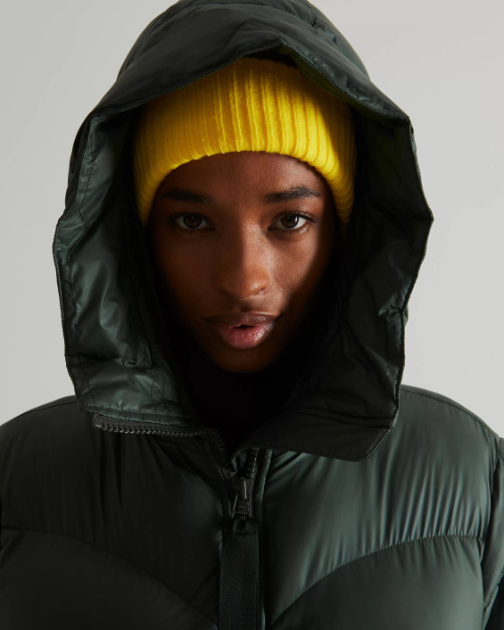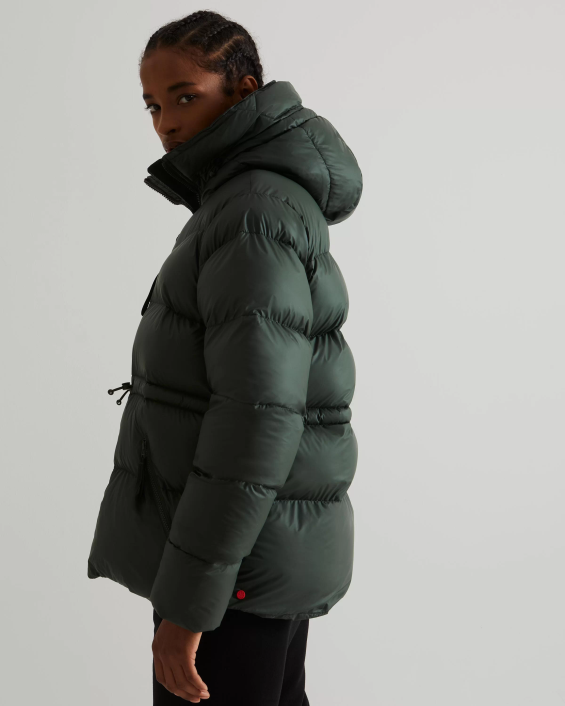 Hemos realizado dos ajustes a nuestro producto más vendido. Chaqueta acolchada de goma vegana de corte A para mujer para hacerla aún más sostenible. El aislamiento suave y acolchado está hecho de botellas de plástico recicladas y el forro está hecho de poliéster reciclado. Con una cubierta de goma repelente al agua, esta chaqueta de color verde intenso mantendrá te calientas en temperaturas tan bajas como -25 grados centígrados (-13 grados fahrenheit).
