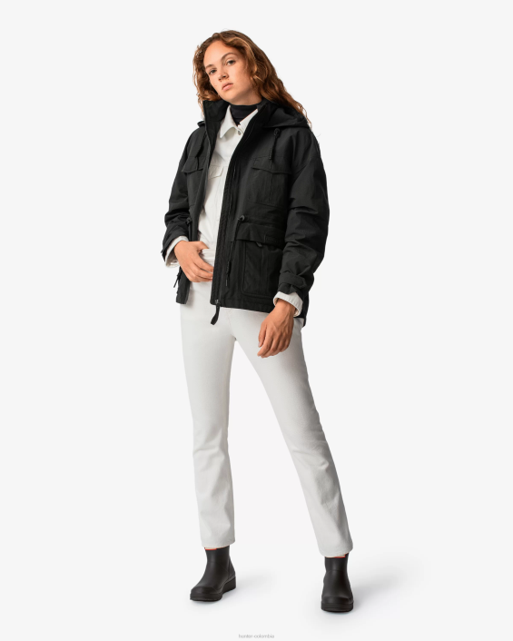 - lengüeta con la marca Hunter y cremallera frontal central totalmente impermeable
