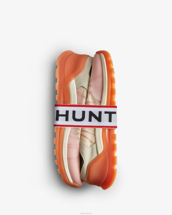 una zapatilla urbana informal con un atractivo deportivo de lujo, la zapatilla de viaje Hunter está confeccionada con una doble capa suave y transpirable de Nylon y malla 100% reciclados. La entresuela de EVA reciclada, liviana y absorbente de impactos, y la plantilla de ortholite reciclada garantizan una comodidad superior y un uso flexible, mientras que la suela de goma duradera con certificación FSC brinda agarre adicional para todos los terrenos. Una línea de protección de goma de TPU súper liviana agrega un nivel adicional de protección contra la lluvia. Esta zapatilla para mujer está rematada con una lengüeta con el logo tricolor de Hunter en la parte posterior para facilitar el calce.